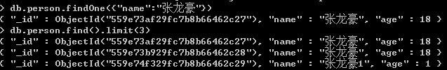 Note:findOne,返回结果集中的第一条数据。limit(3),返回结果集中的前三条数据。